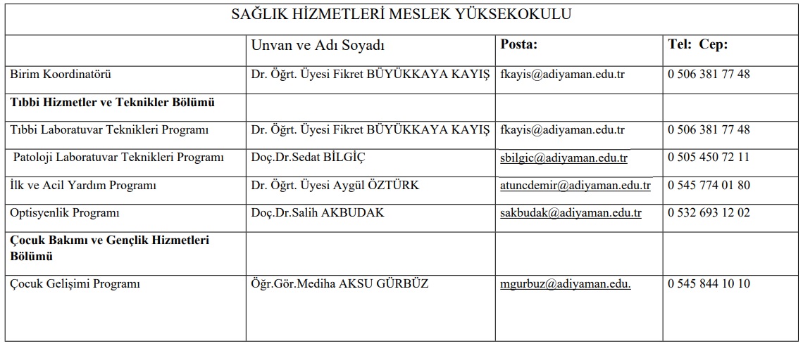 YÜKSEKOKUL BOLOGNA KOORDİNATÖRLERİ |